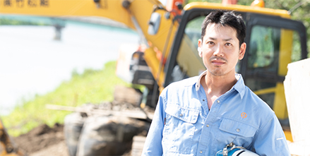 工事現場に出て力作業や建設機械の 運転を行い、工事を進めます。