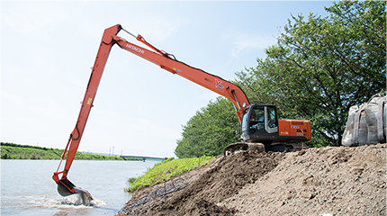近年では、高度経済成長期のピーク時と比べて、公共事業は大きく削減されたものの、昨今のゲリラ豪雨に対応するための河川工事、大規模地震に対するライフライン(上、下水道・都市ガス管)の改修工事を中心に、市内で大きく業績を上げています。