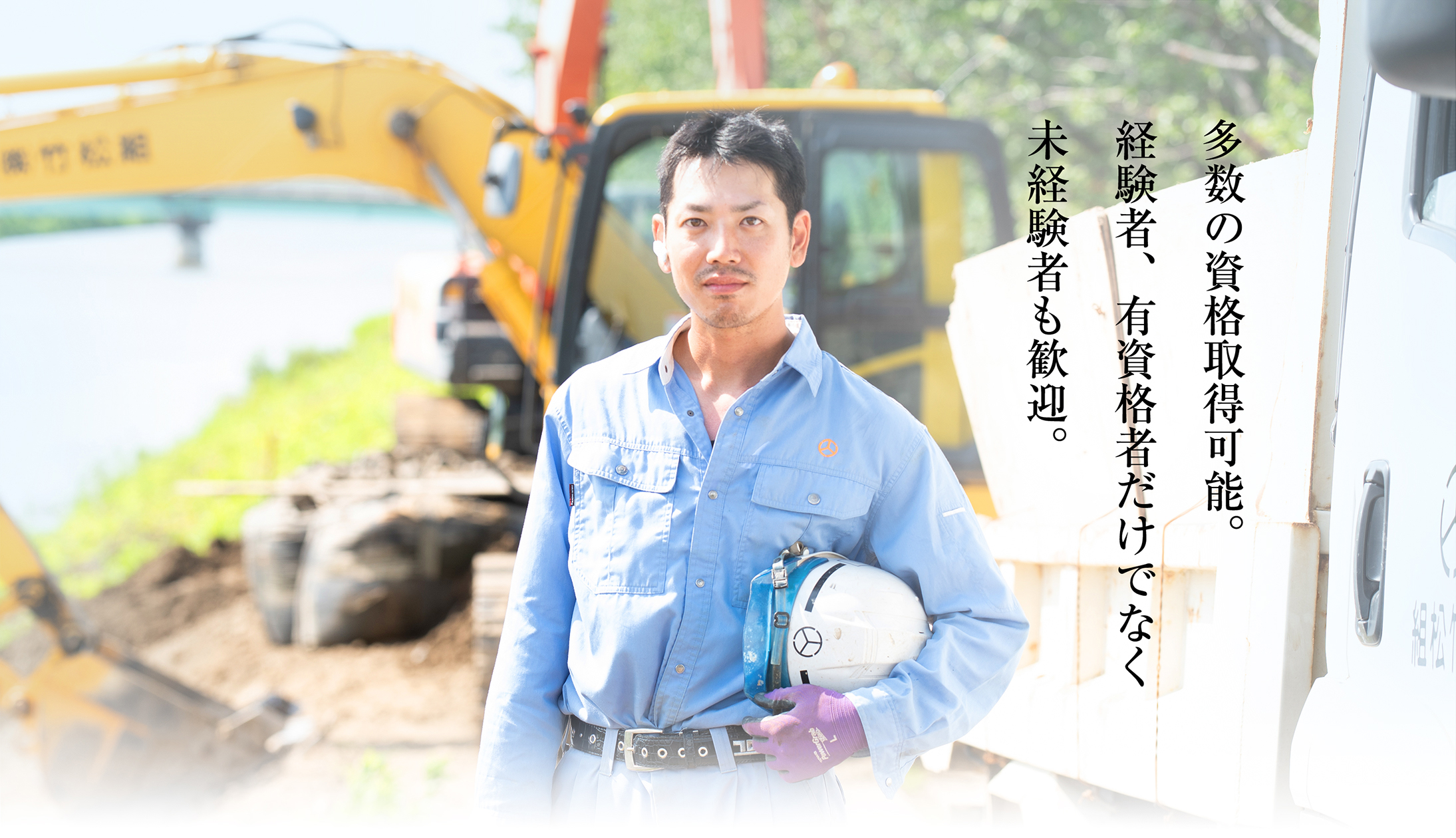 現場は道路工事、河川工事、住宅の外構工事、維持メンテナンス工事、水道ガス工事、下水道工事と多岐にわたります。